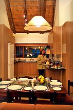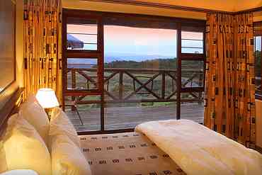 Accommodation consists of thatch Lodges with one, two or three bedrooms, sleeping up to eight guests. The sleeper couches are only suitable for two children younger than 12 years. Some of the main bedrooms have en-suite bathrooms. Lodges are serviced daily and are fully equipped for self-catering - complete with microwave, stove and fridge. Each lodge has satellite television and M-Net in the open-plan lounge/dining area with cozy fireplace. All Lodges overlooks sweeping Escarpment views from the wooden deck (equipped with  braai/barbecue and patio furniture). Towels are provided and larger units have washing machines and tumble driers.
